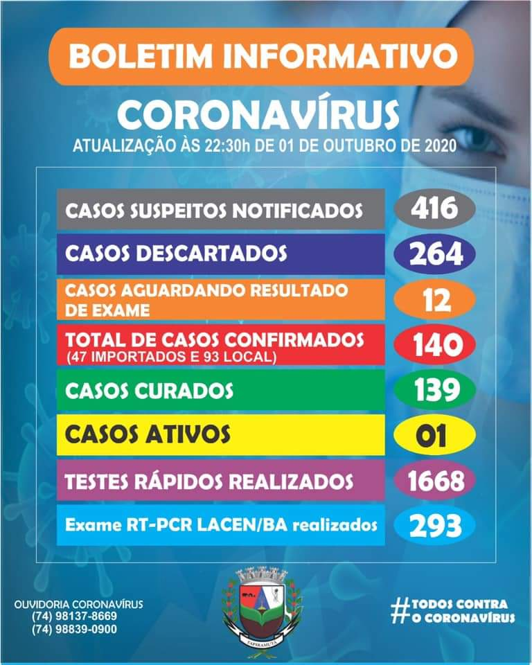 Tapiramutá tem mais 02 pacientes recuperados da Covid-19 e fica perto de zerar casos ativos no município.