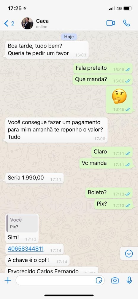 O prefeito de Miguel Calmon-BA, José Ricardo Leal – Caca, teve seu número de WhatsApp clonado. O crime foi descoberto nesta quinta-feira, dia 29 de abril de 2021, quando criminosos começaram a pedir transferências de valores para os contatos do prefeito.