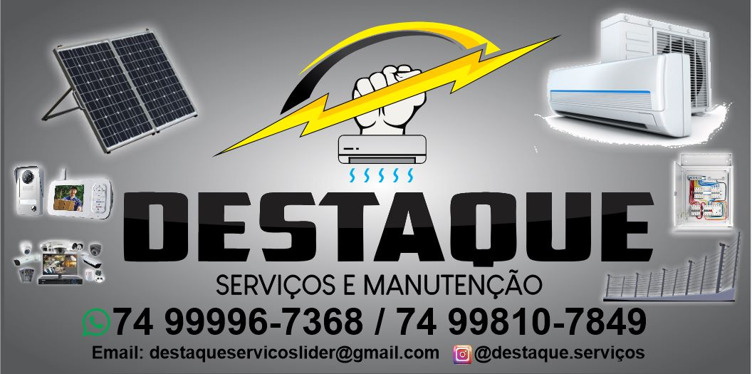 A Destaque trabalha com manutenção e serviços em ar condicionado, cerca elétrica, CFTV e segurança, sistema solar, elétrica residencial, porteiro eletrônico, vídeo porteiro, refletores solar e elétrico, além de instalação de poços artesianos.