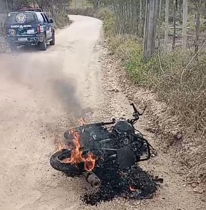 Uma motocicleta Honda, ano 1995, branca, foi encontrada na tarde desta quarta-feira, dia 14 de novembro de 2024, pegando fogo, em uma estrada vicinal, próximo à cidade de Capim Grosso.